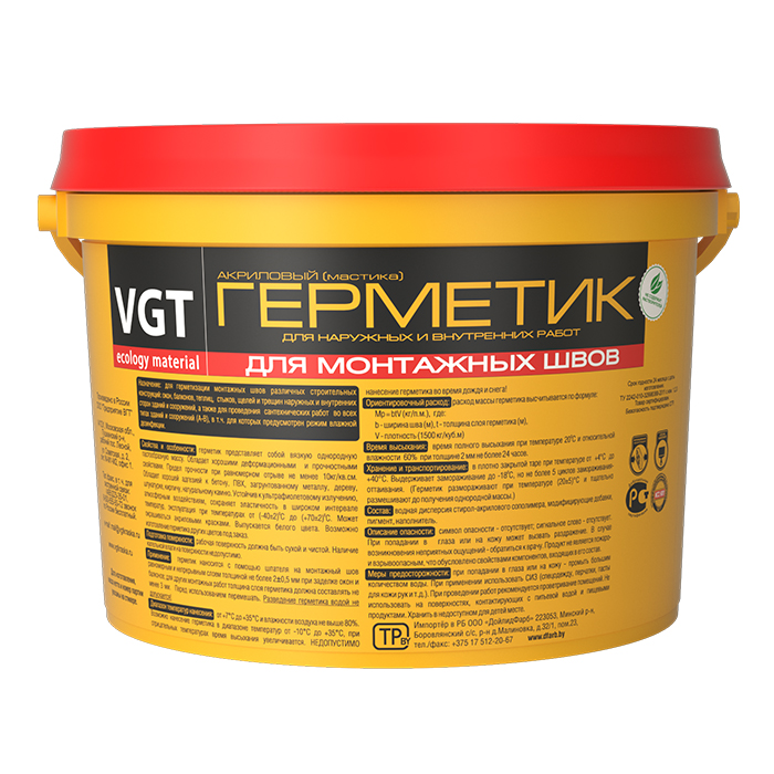Герметик акриловый (мастика) для наружных и внутренних работ белый для монтажного шва 7кг VGT
