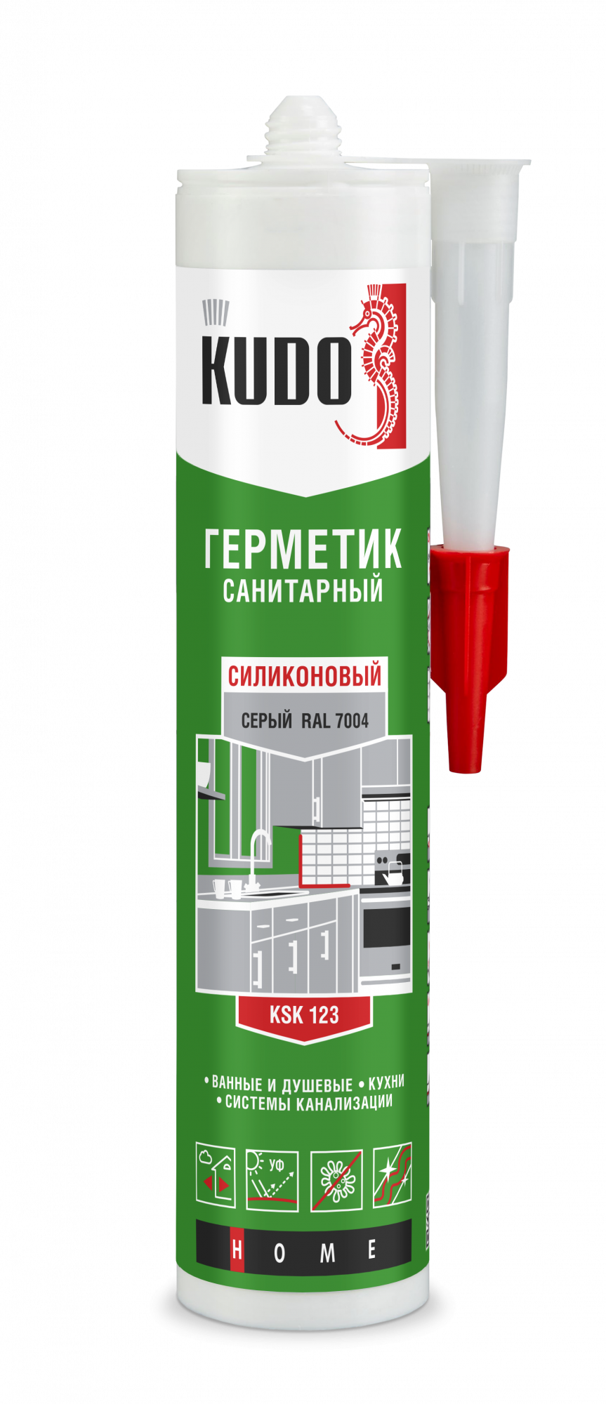 Герметик силиконовый KUDO санитарный сигнальный серый 280 мл