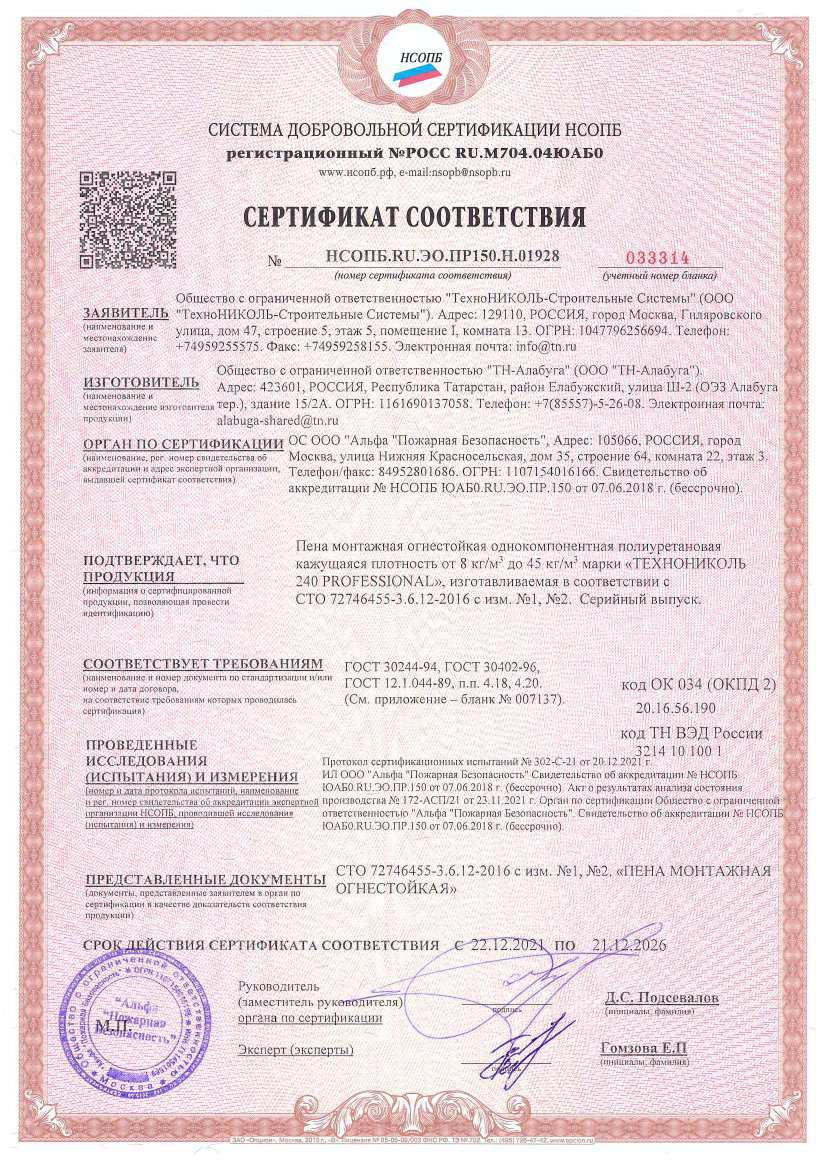 Пена монтажная пистолетная огнестойкая ТЕХНОНИКОЛЬ 240