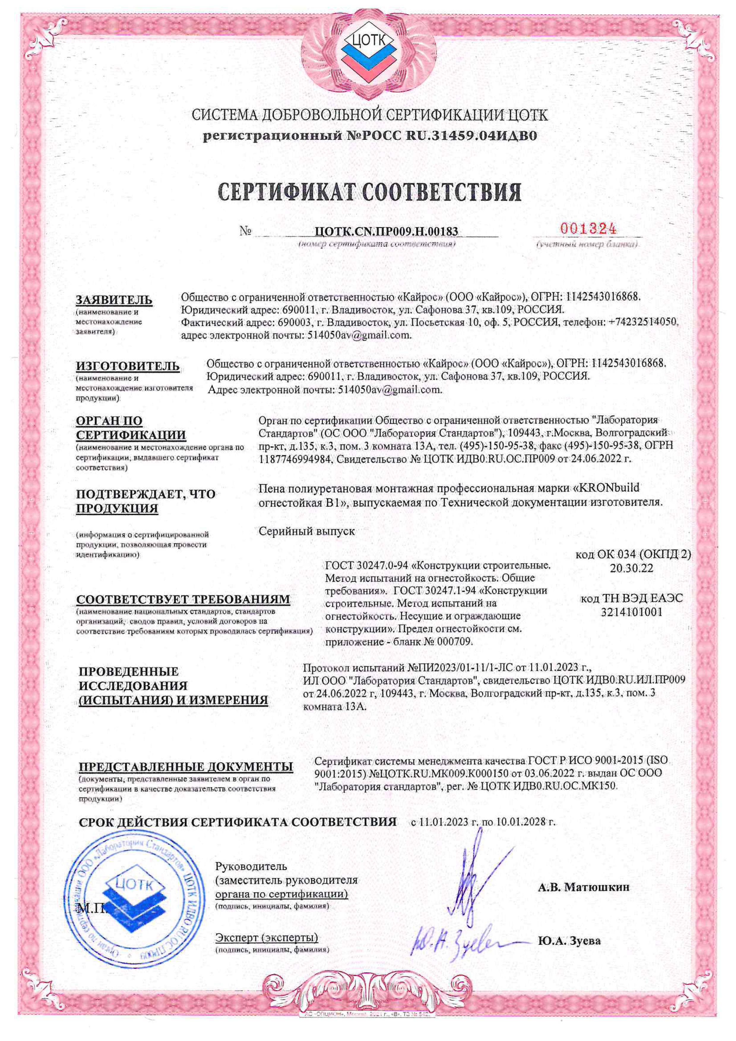 Пена монтажная профессиональная KRONbuild огнестойкая В1