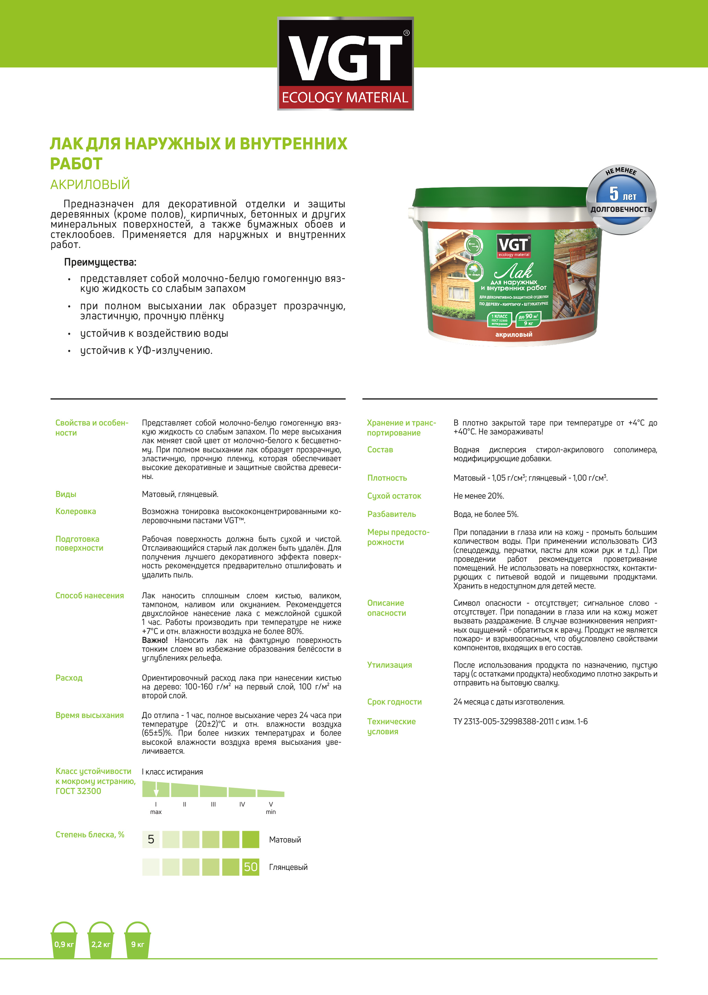 Лак акриловый VGT глянцевый для наружных и внутренних работ 2,2кг (неморозостойкий)