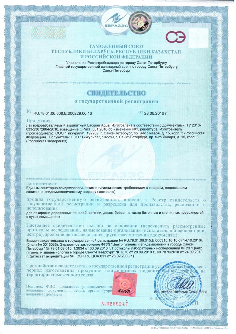 Колеровка: 36 цветов по каталогу цветов Тиккурила «Колеруемые лаки для интерьера»