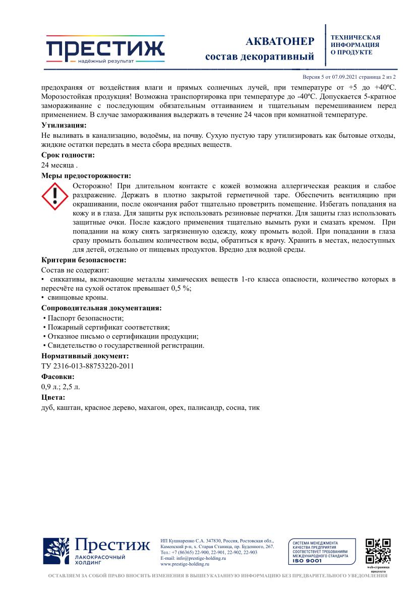 Акватонер ПРЕСТИЖ орех 2,5 л