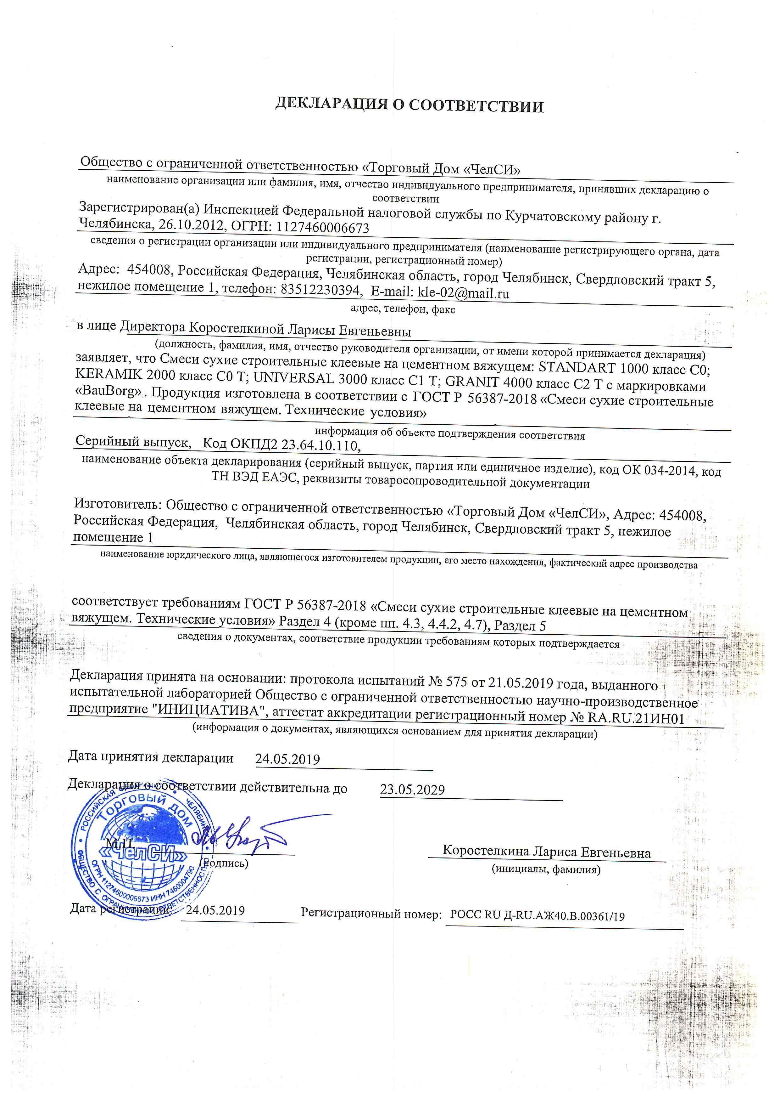 BauBorg Клей усиленный для керамогранита GRANIT 3000 25кг