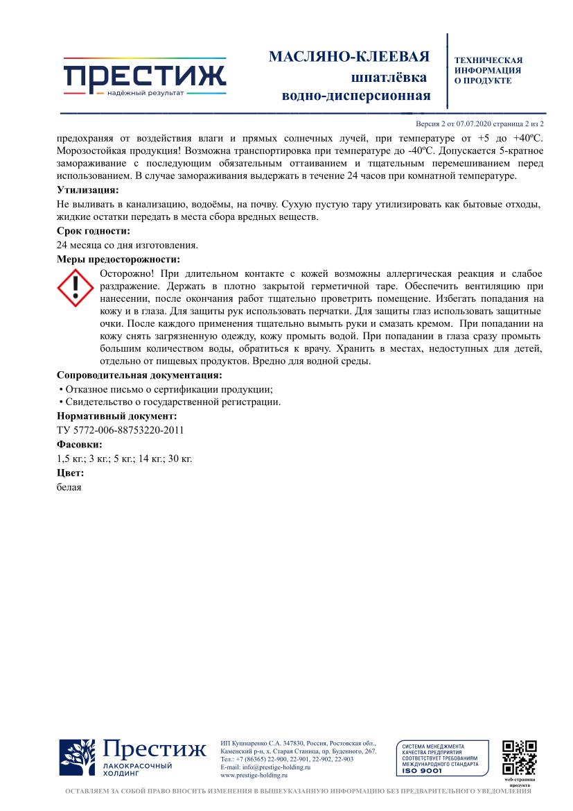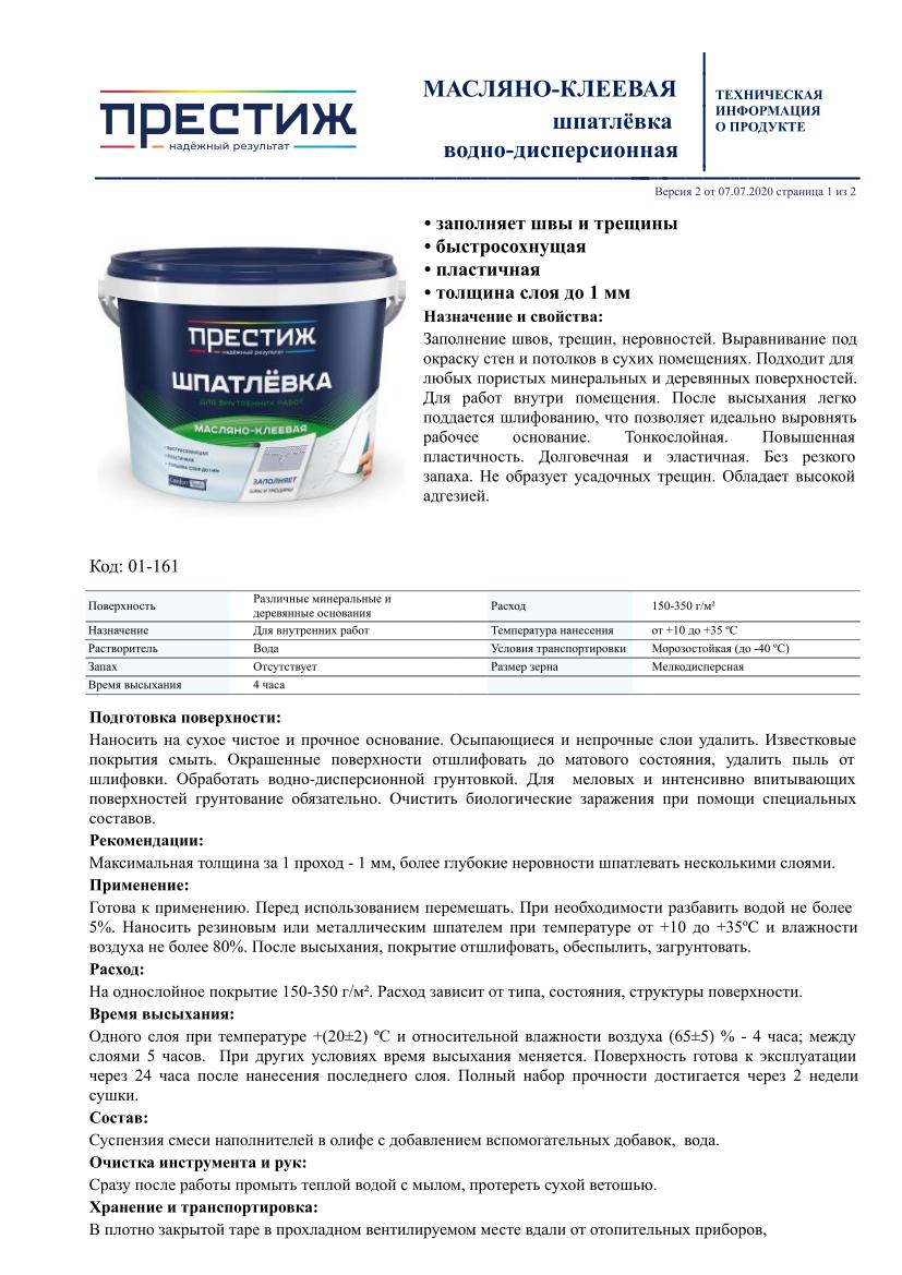 Шпатлевка масляно-клеевая ПРЕСТИЖ 1,5кг