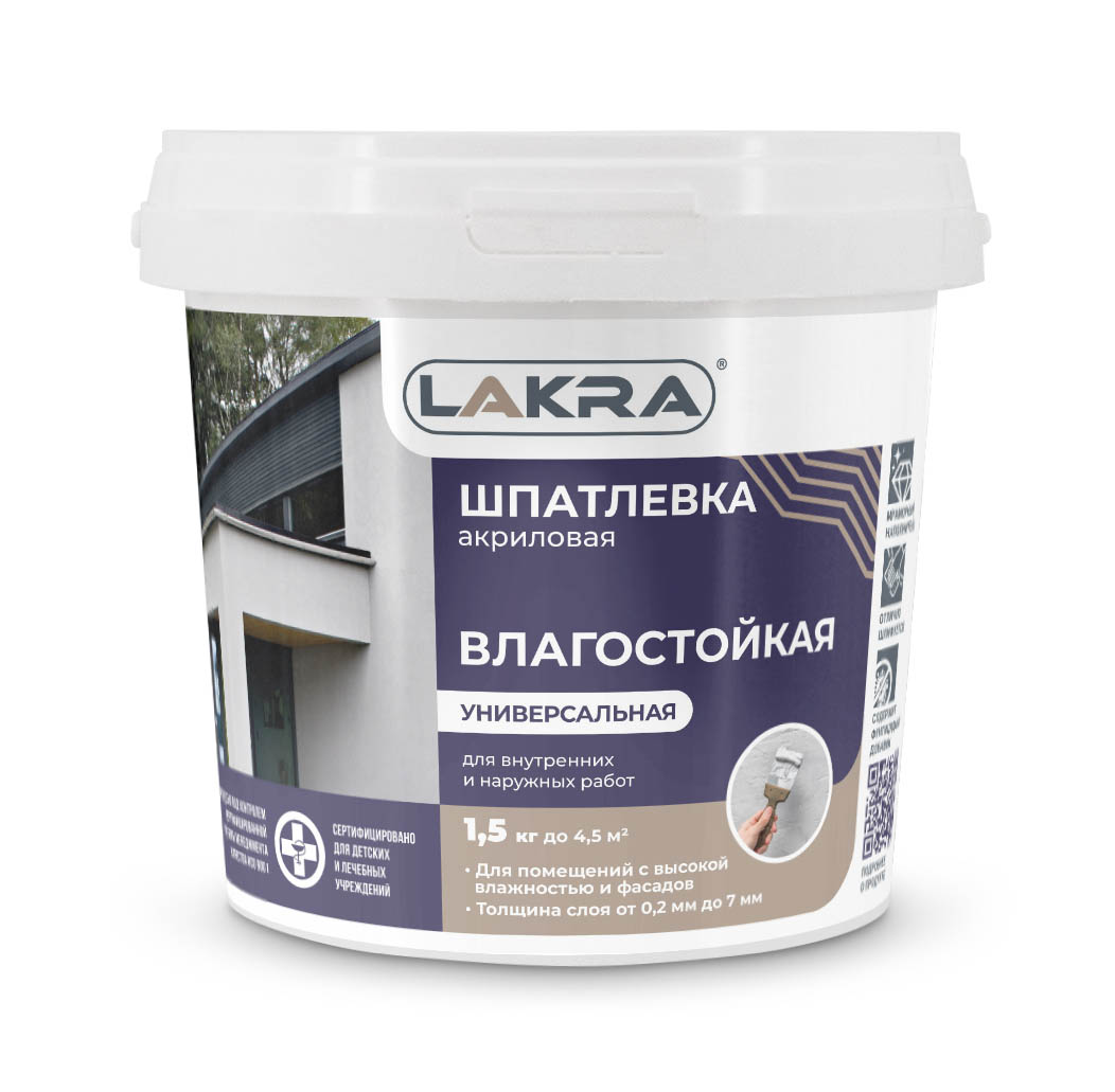 Шпатлевка акриловая универсальная для внутренних и наружных работ Лакра 1,5кг