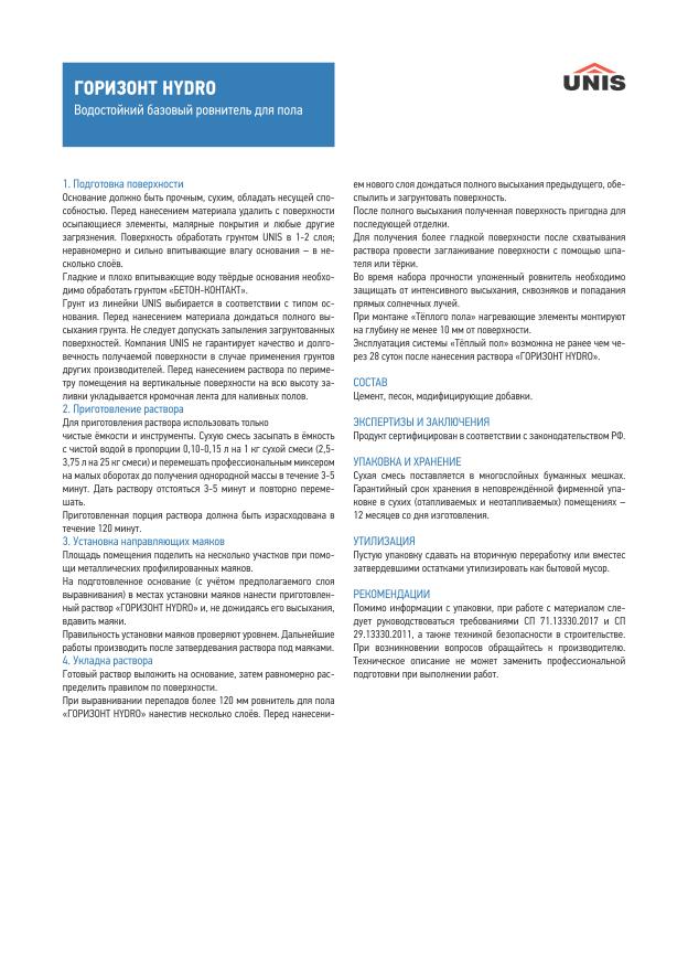 Юнис Горизонт ровнитель для пола HIDRO 25 кг