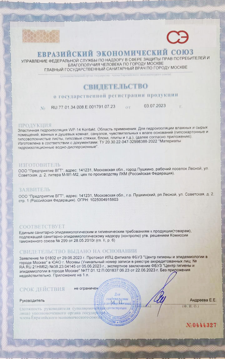Эластичная гидроизоляция Контакт (с кварцевым песком) 1,3 кг (ВГТ)