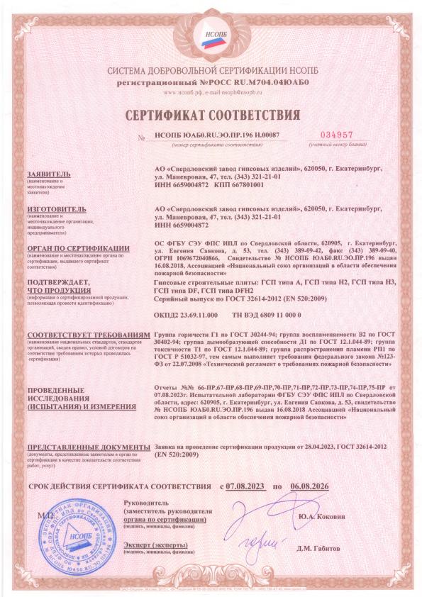 Гипсокартон GIFAS 2500х1200х9,5мм (65) ГКЛ