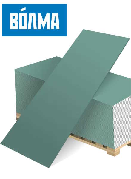 Влагостойкий гипсокартон (ГКЛВ) ВОЛМА выпускается для облицовки стен и потолков в помещениях с повышенной влажностью